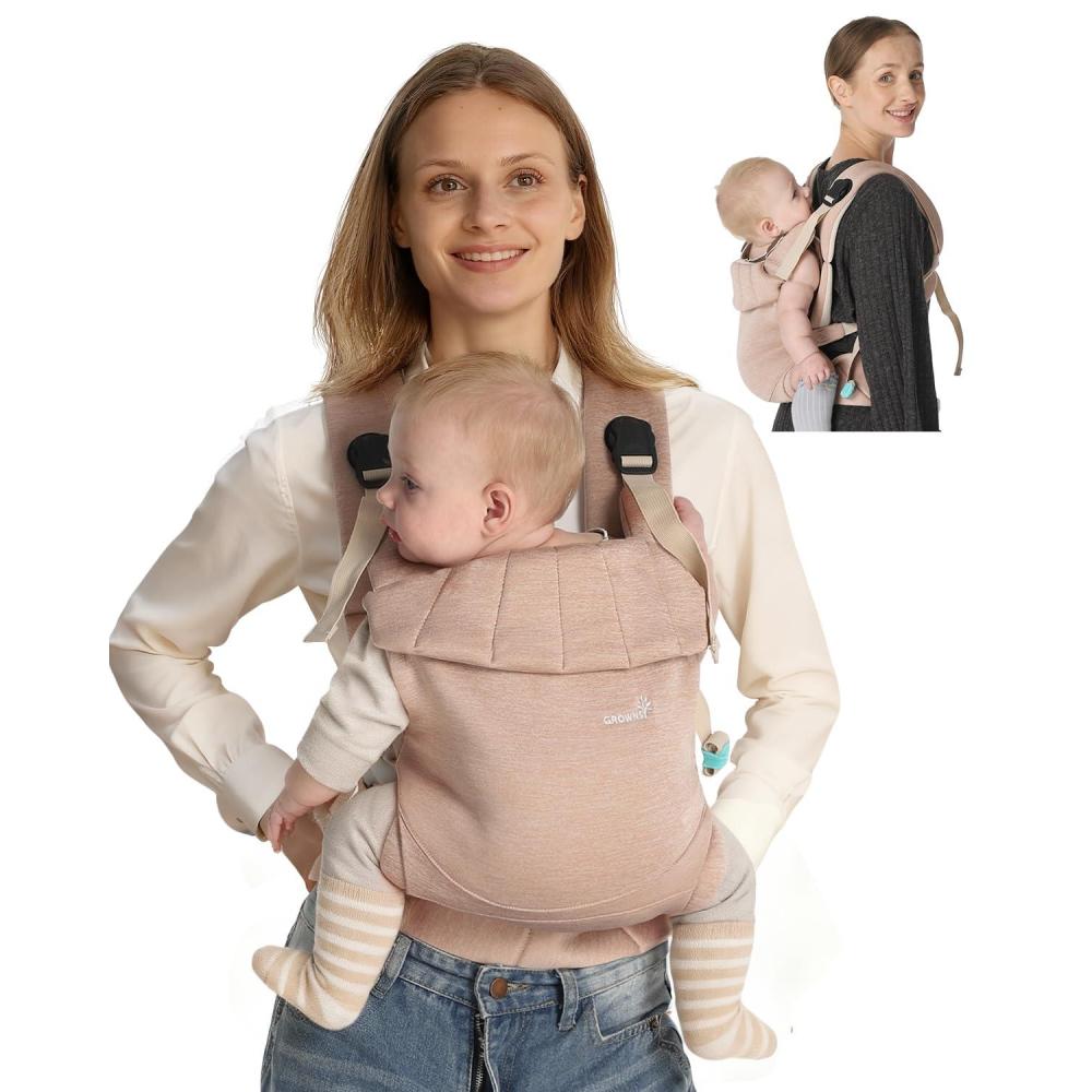 GROWNSY Baby Carrier, One-Click Release Clasp for Easy to Wear, Cozy Wraps Carrier Newborn to Toddler with Head Support(7-44lbs), Ergonomic & Lightweight for Infant to Toddler, Cream(Dusty Pink)
