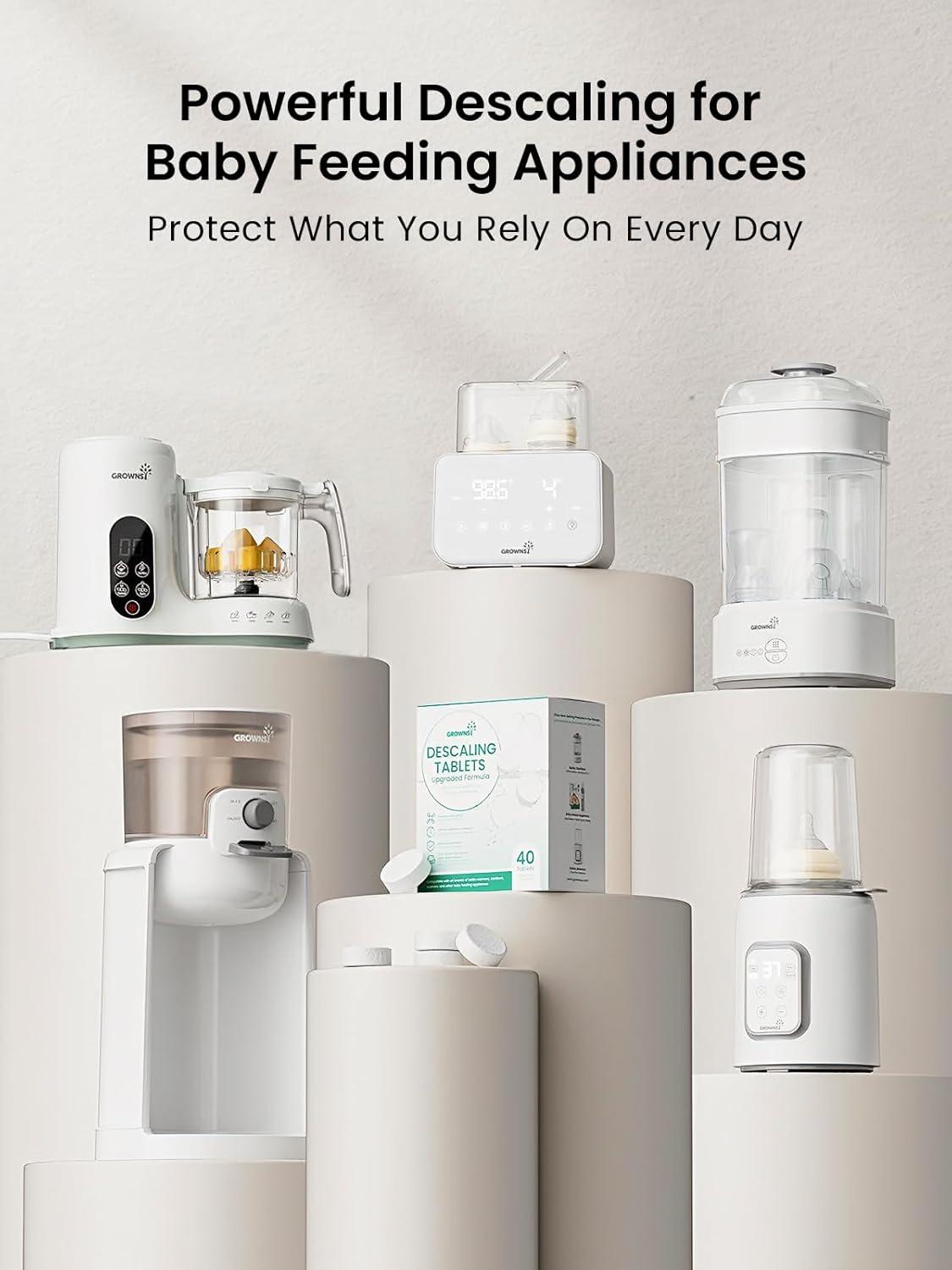 Effectively Removes Scale & Milk Residue: GROWNSY Descaling Tablets Detergent Washing Tablets break down stubborn limescale, milk film, and mineral deposits to keep your bottle warmer or sterilizer clean and performing at its best.
