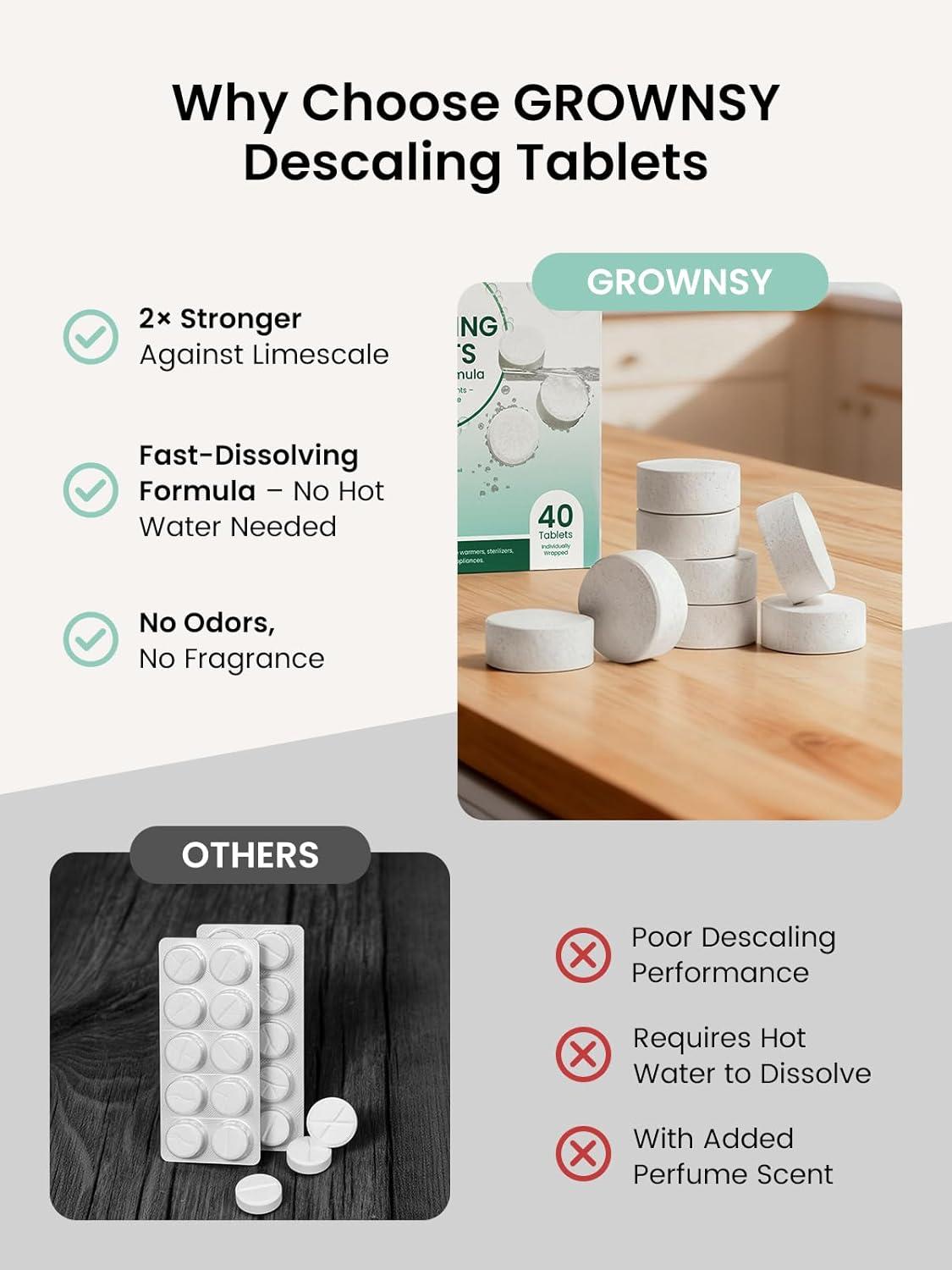 Supports Appliance Longevity: The descaling tablets help maintain heating efficiency and extend the lifespan of your equipment. Descale every 1–2 weeks to maintain cleanliness and optimal performance.